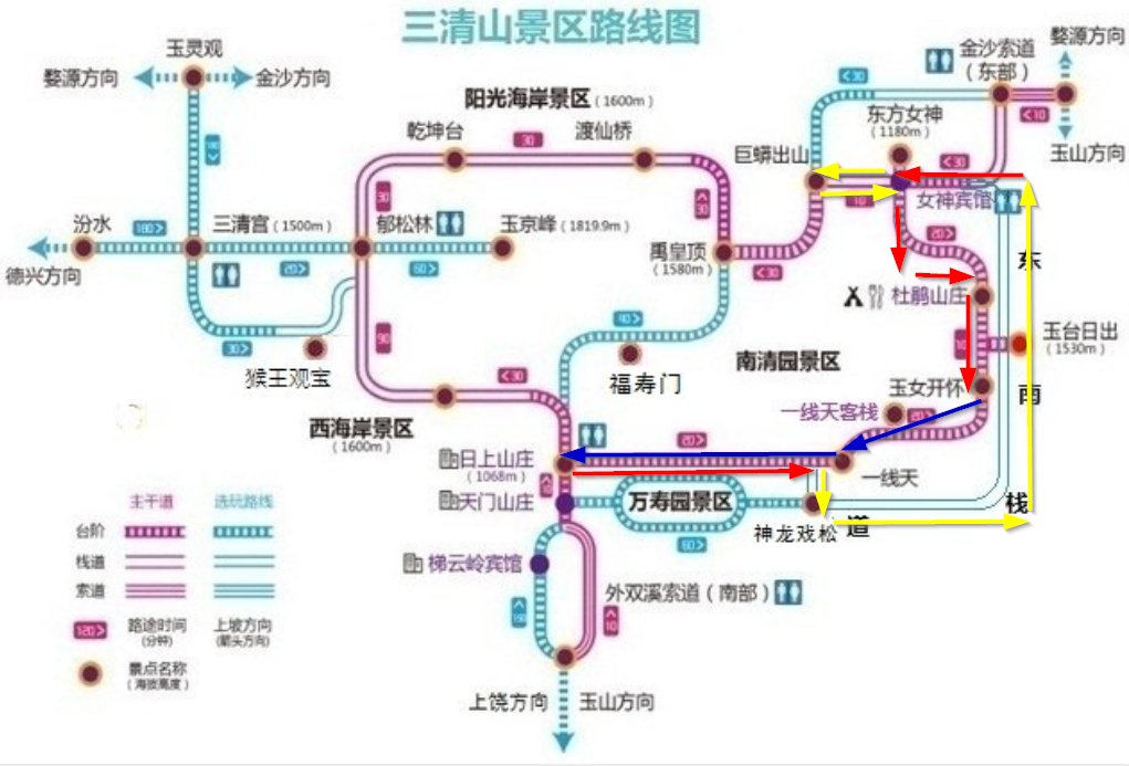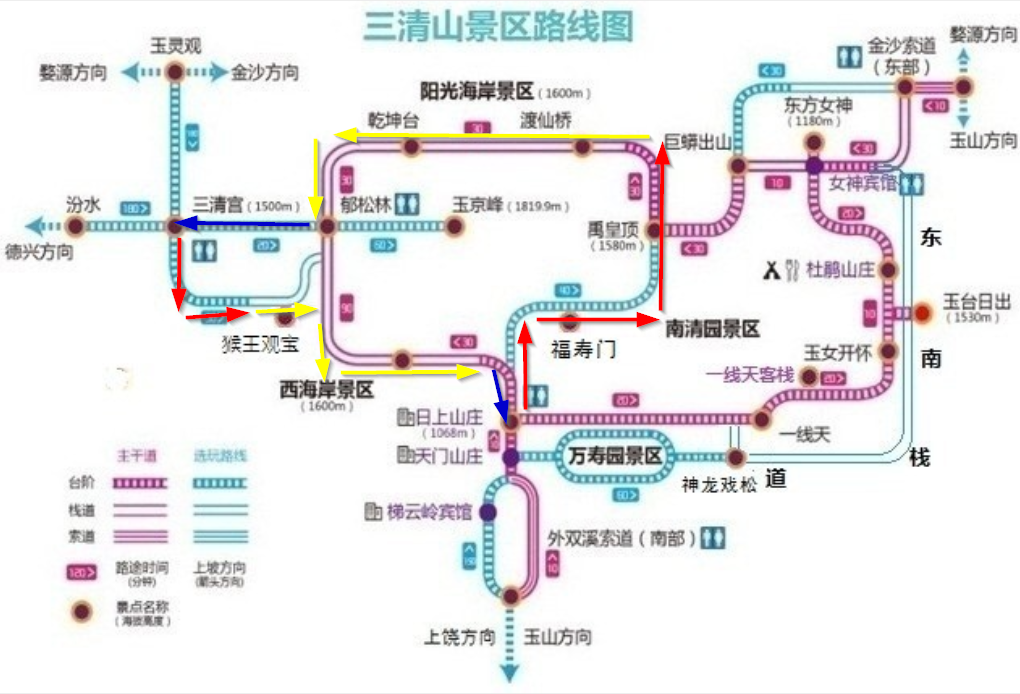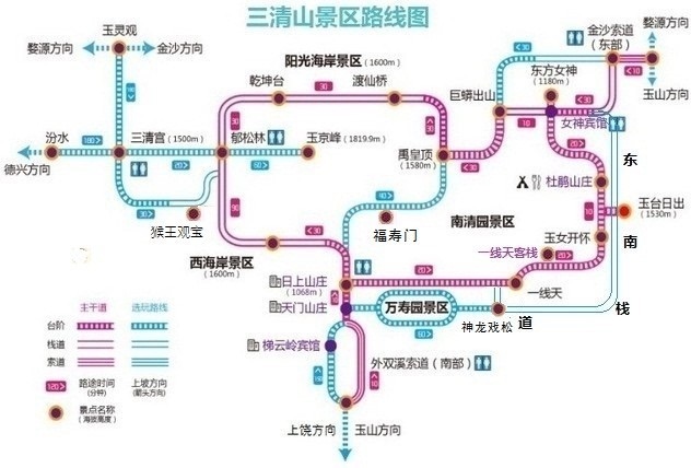 相信很多人第一次看到三清山的地图,会有点晕,下面这张路线图是我认为在众多地图中比较清晰的一款。
